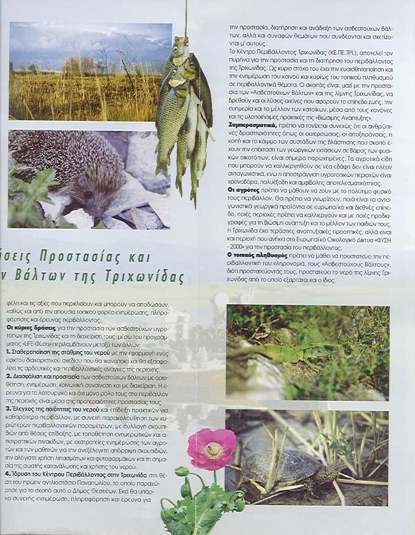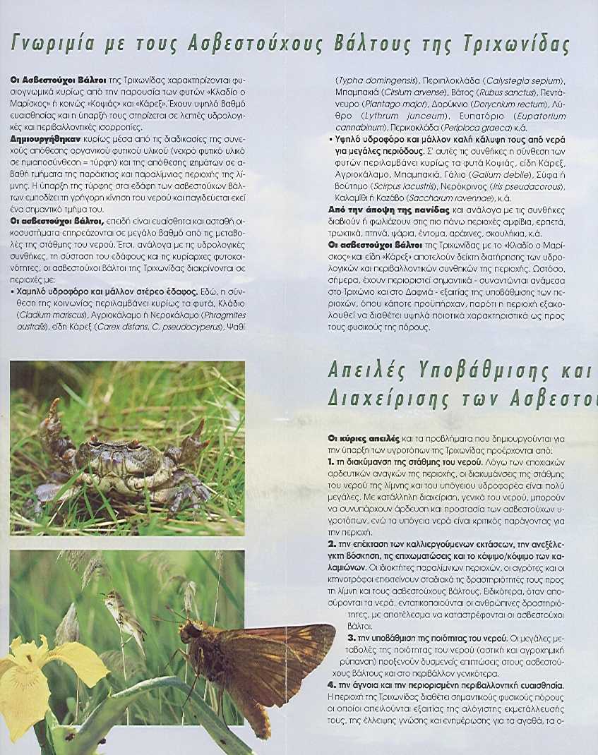 ΜΕΛΕΤΗ ΕΚΘΕ/ Life- Φύση ’99 : Καταγραφή της κατάστασης των Ασβεστούχων Βάλτων της λίμνης Τριχωνίδας.
