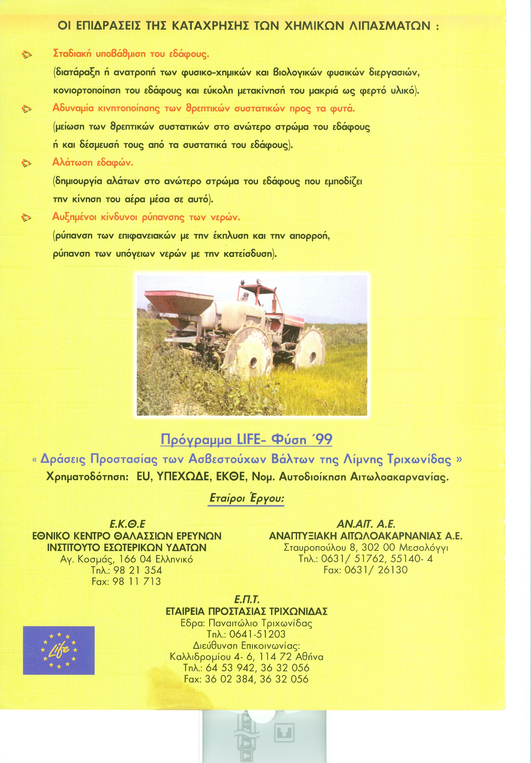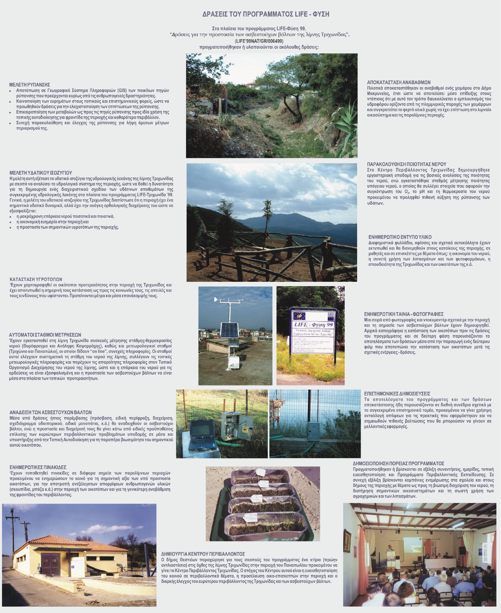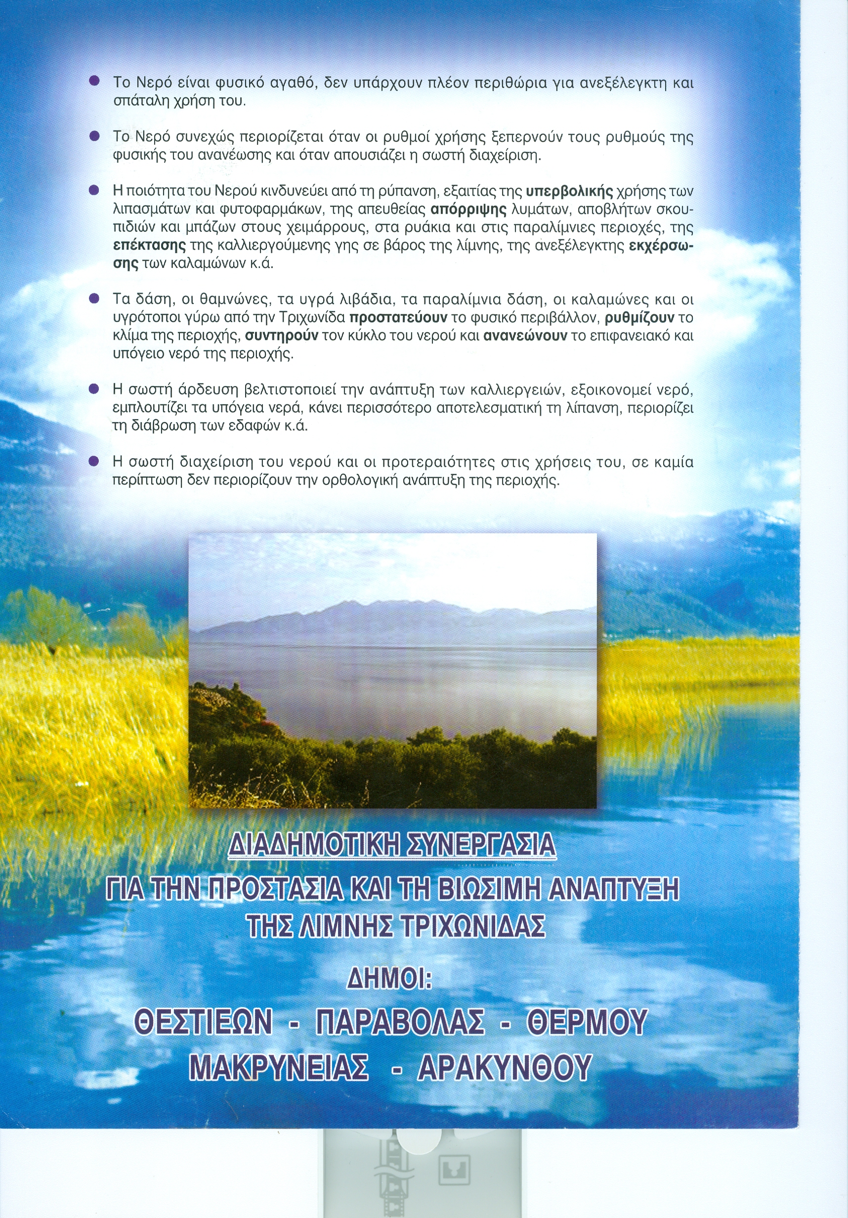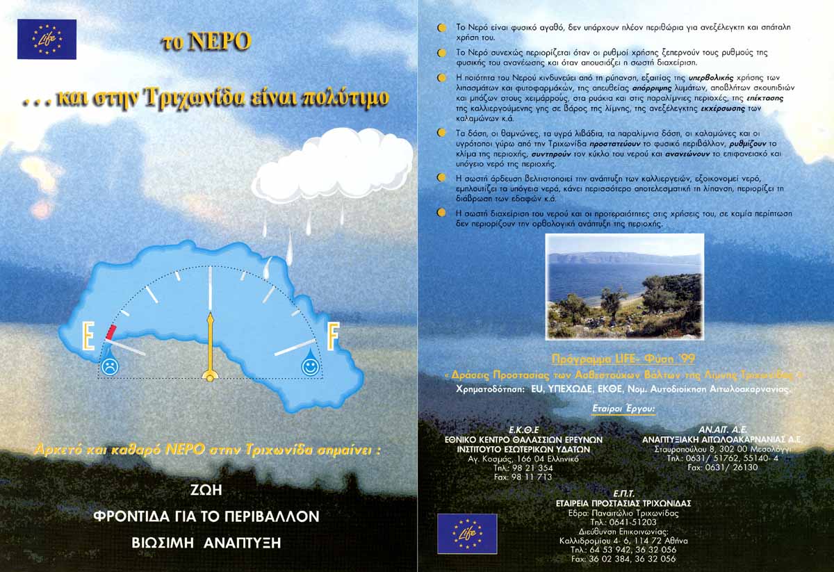 ΜΕΛΕΤΗ ΕΚΘΕ/ Life- Φύση ’99 : Διαχειριστικό σχέδιο των υδατικών πόρων υδρολογικής λεκάνης λίμνης Τριχωνίδας.