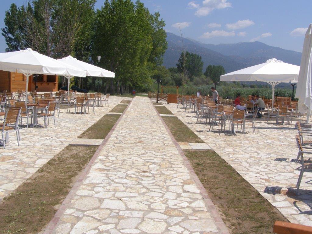 - Δημιουργία χώρου εστίασης και αναψυχής όπου θα πωλούνται παραδοσιακά εδέσματα με πρώτες ύλες τα τοπικά και σε κάθε περίπτωση τα βιολογικά προϊόντα. Τα εδέσματα θα μεταφέρονται εκεί από τον επιχειρηματία, ο οποίος θα μισθώσει από το Δήμο για συγκεκριμένο χρονικό διάστημα το χώρο. Ο επιχειρηματίας αυτός θα πρέπει να είναι από την περιοχή και να διαθέτει κατάστημα εστίασης στο Δήμο Θεστιέων. Τα εδέσματα, τα οποία θα πρέπει να είναι προδιαγραφών, δηλαδή παραδοσιακά, θα παρασκευάζονται στο κατάστημα εστίασης του επιχειρηματία και θα μεταφέρονται και διατίθενται με όλους τους κανόνες ασφάλειας και υγιεινής στο χώρο του κυρίως κτιρίου ή υπαίθρια αυτού. Εκεί θα τοποθετούνται και διατηρούνται ανάλογα, σε θερμοθαλάμους ή ψυγεία. Επίσης πρέπει να υπάρχει υποδομή για παρασκευή παραδοσιακού καφέ σε χόβολη και ροφημάτων. Το κατάστημα μπορεί να διαθέτει ακόμη αναψυκτικά, χυμούς, μπύρα και ντόπιο κρασί.